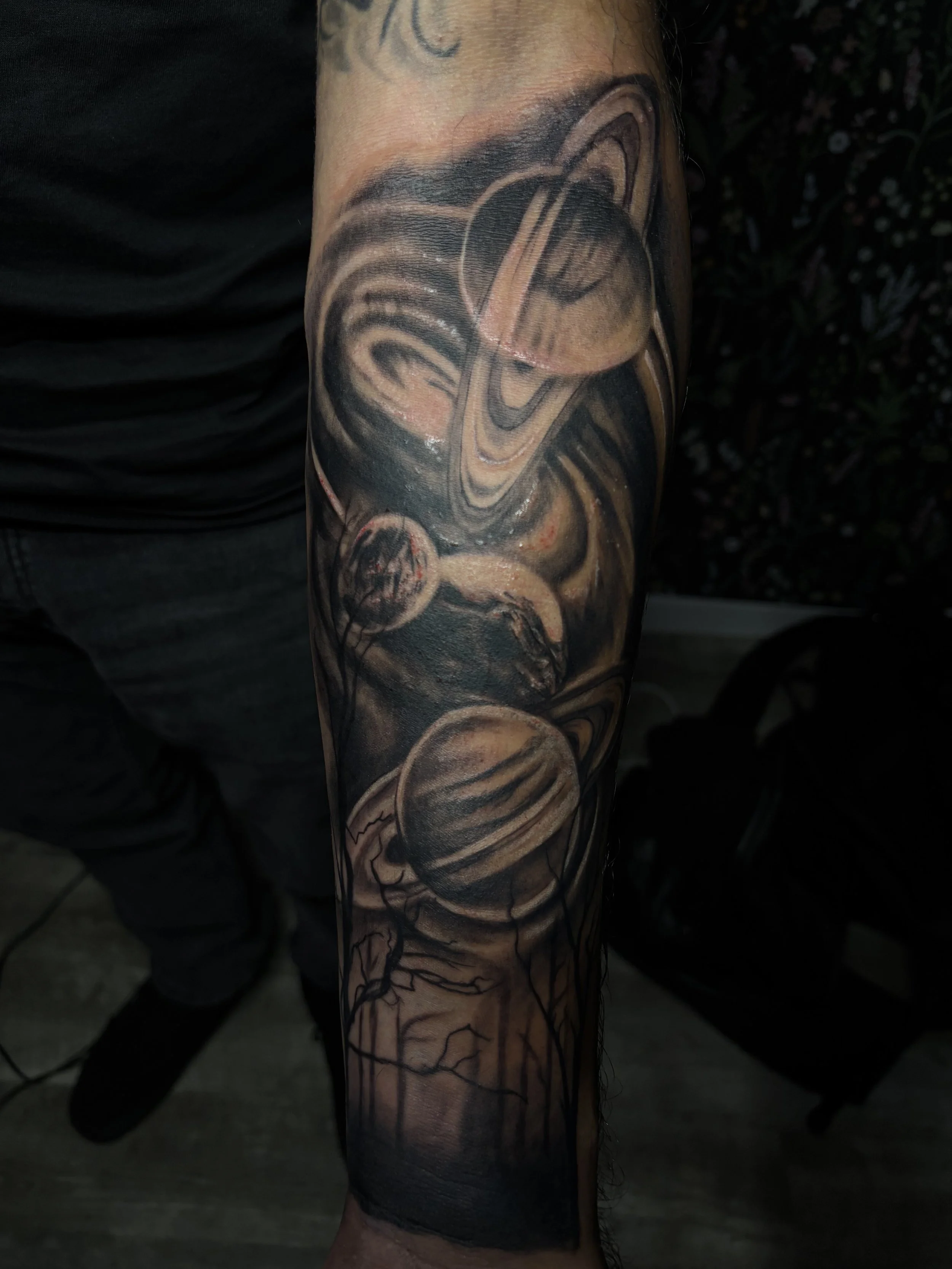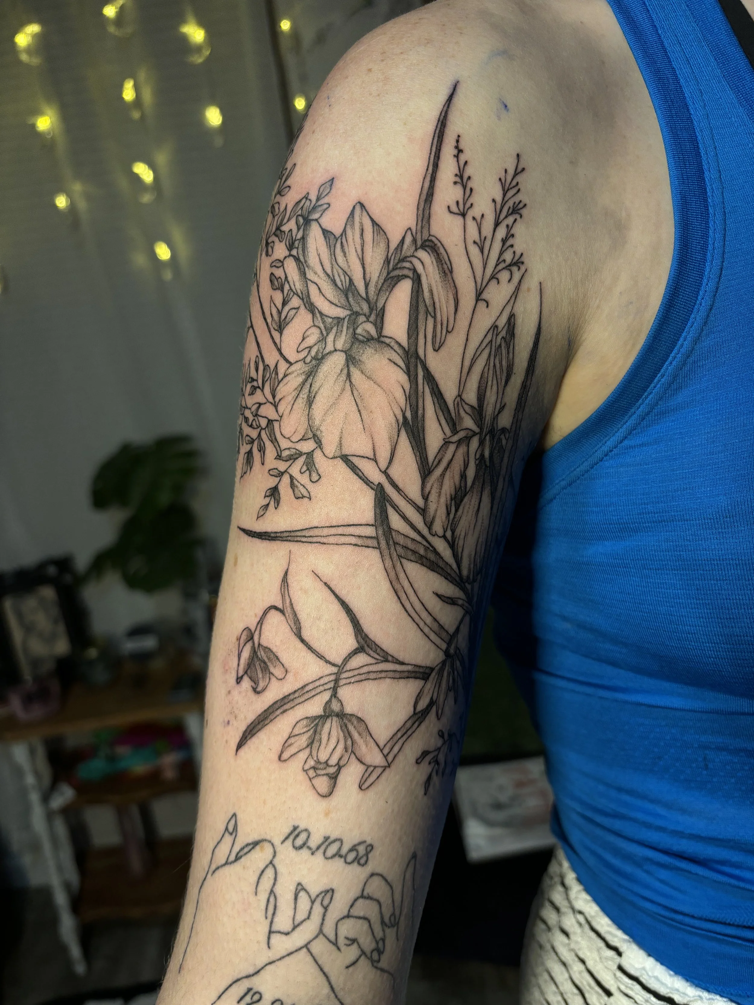 When I’m not tattooing, you’ll usually find me sketching, painting, or adding to my ever-growing collection of vinyls and plants. Music fuels a lot of my creativity — I love being surrounded by it, whether I’m at a concert, a small local show, or just exploring a new place with a coffee in hand.